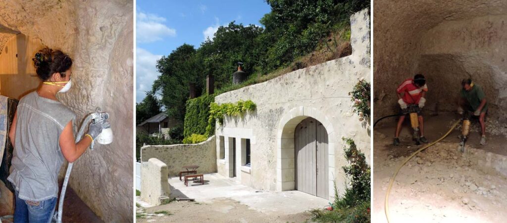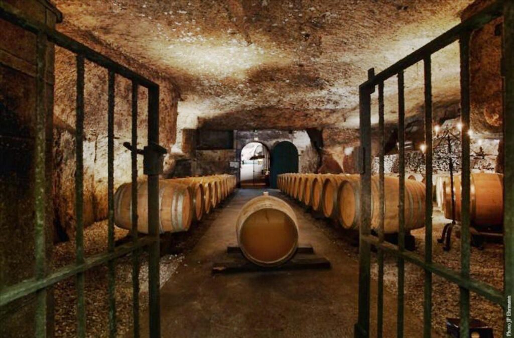 Le tuffeau est une roche calcaire tendre, facile à extraire, mais qui demande un entretien pour rester stable. Sa porosité offre une régulation naturelle de la température et de l’humidité, idéale pour conserver le vin ou cultiver les champignons.